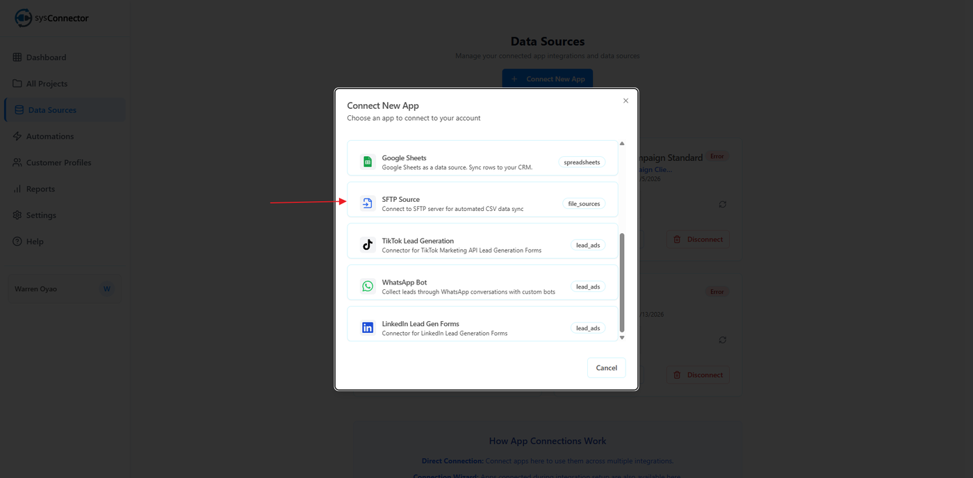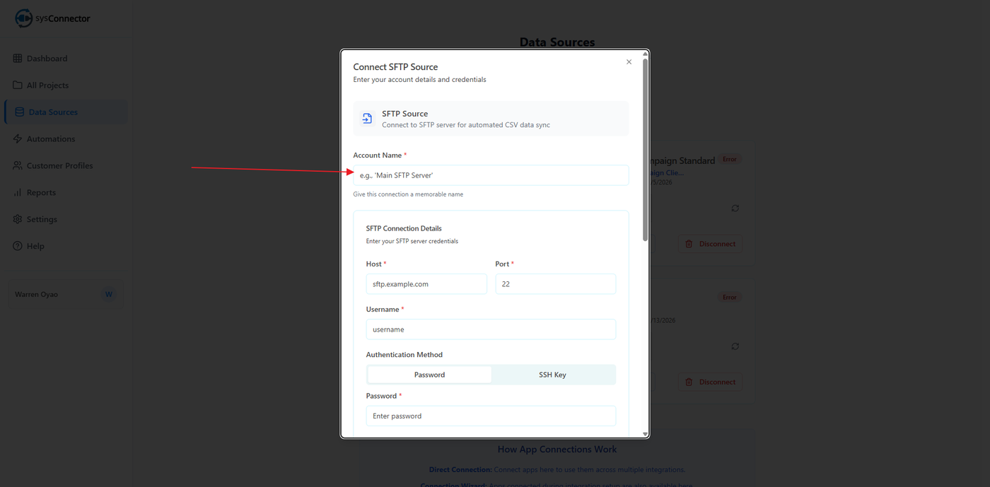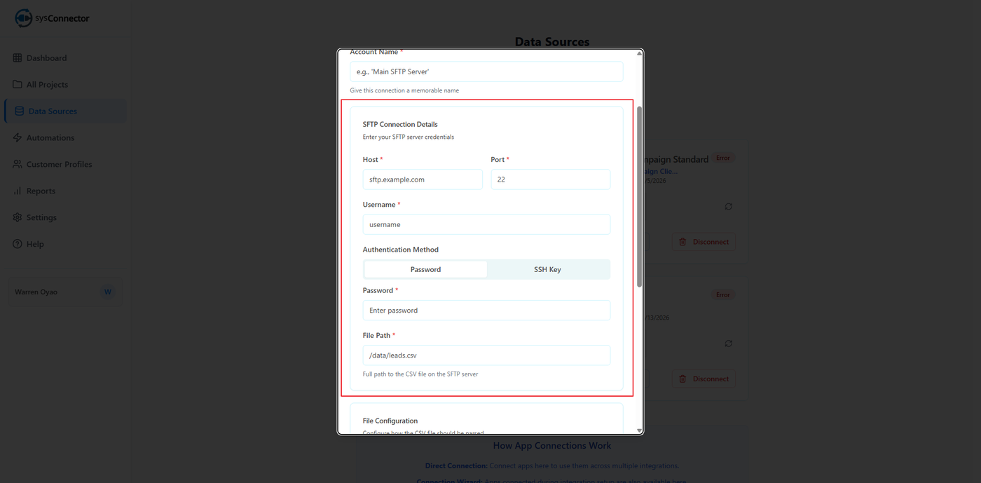 sysConnector is now connected to your SFTP server, and your data will begin syncing automatically.