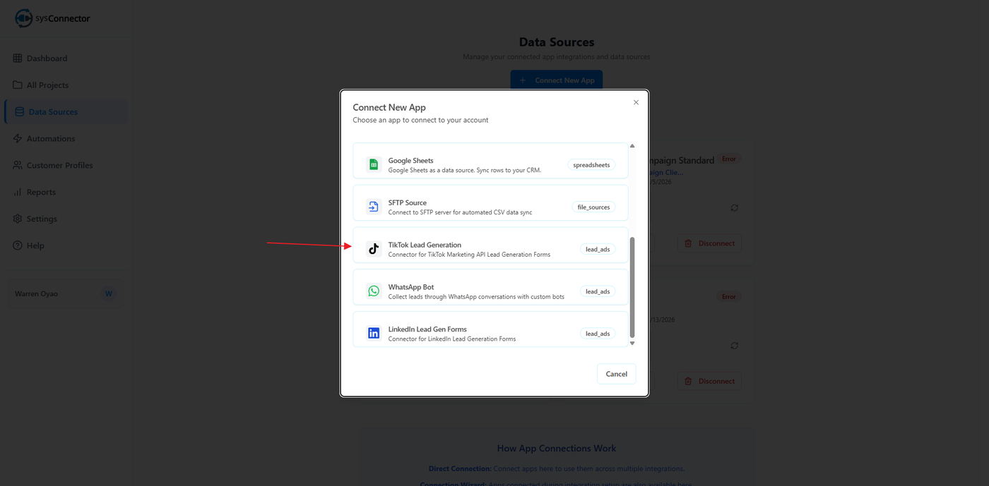 sysConnector is now connected to your TikTok Lead Generation Forms, and leads will begin syncing automatically.