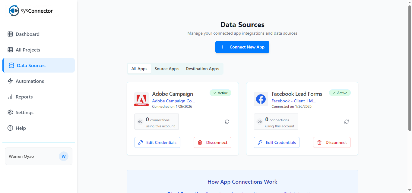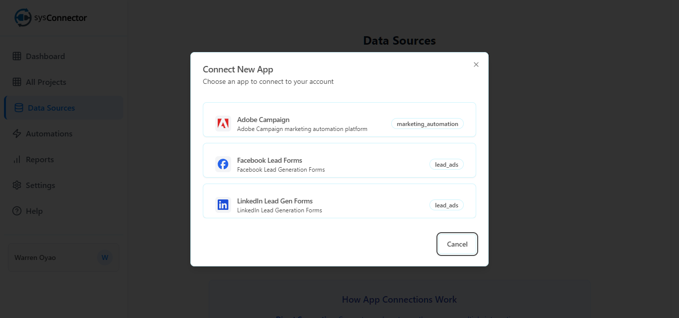 sysConnector is now connected to your Facebook Lead Generation Forms, and leads will begin syncing automatically based on the selected form.