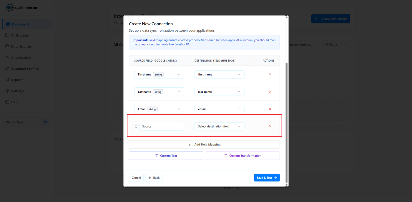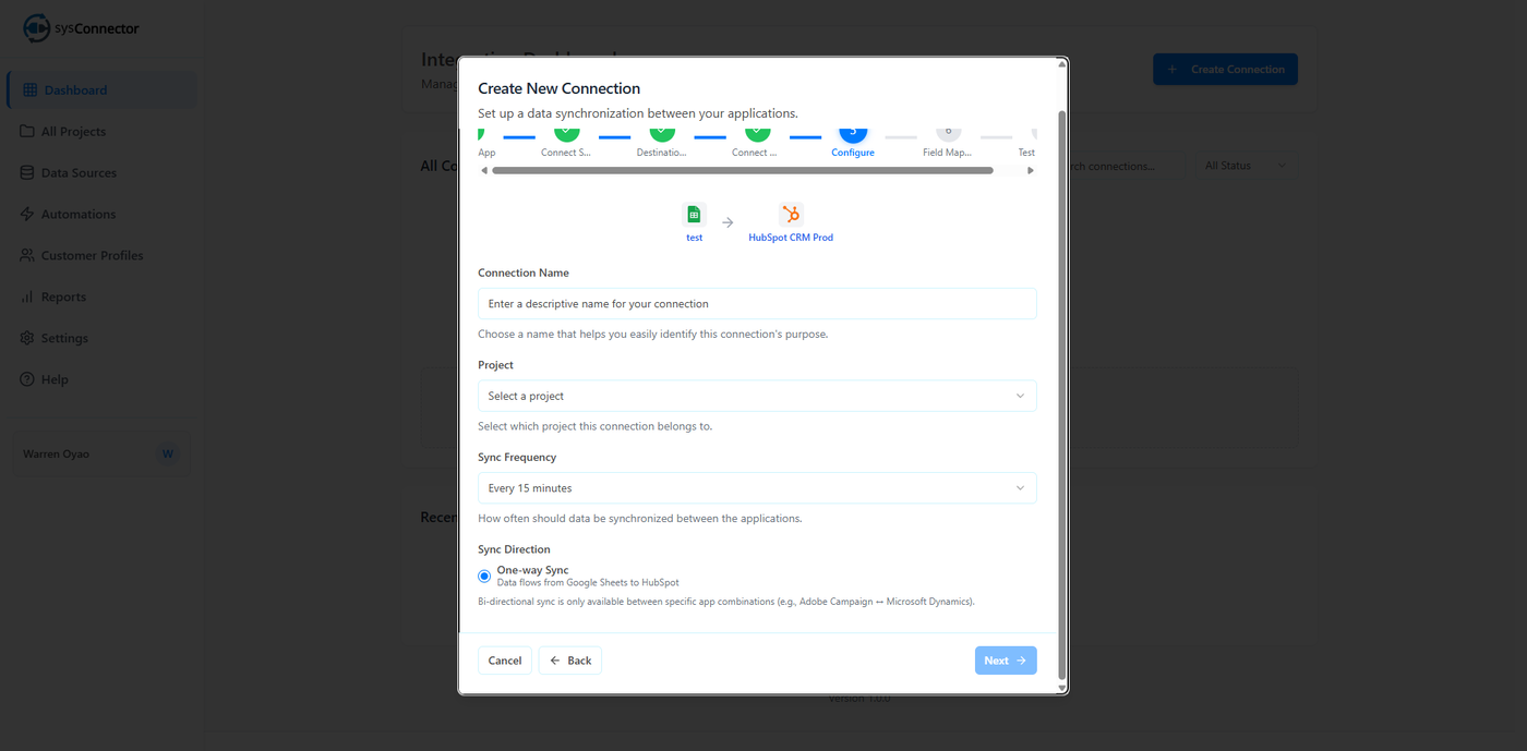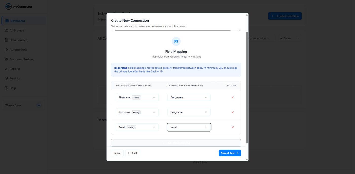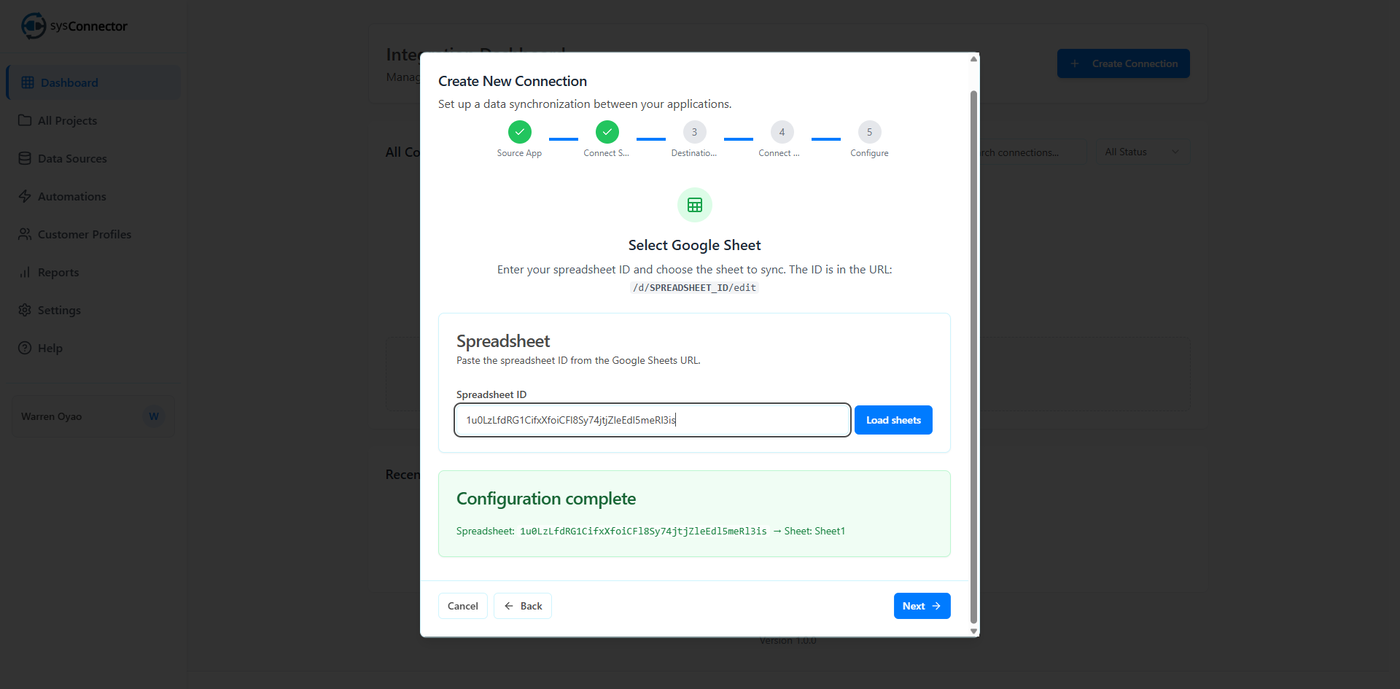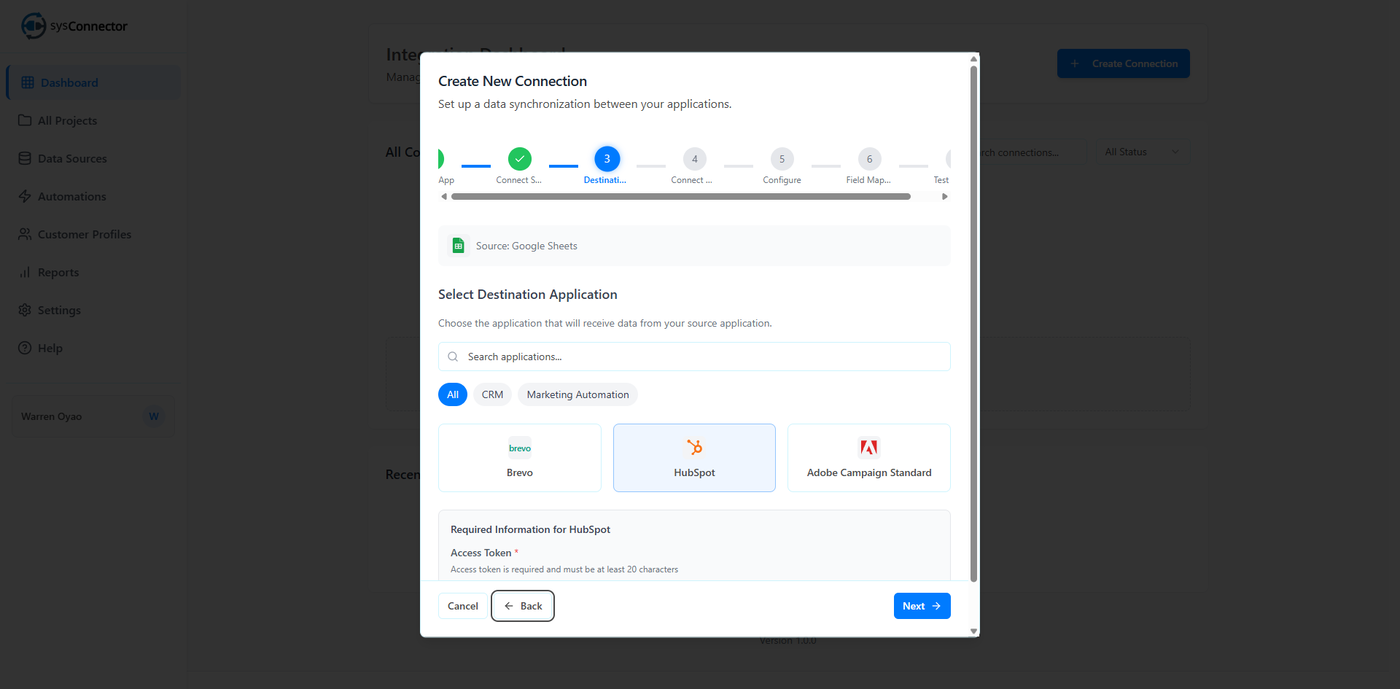 This guide walks you through the complete process of connecting Google Sheets (Source) to HubSpot (Destination) using the sysConnector platform. Once configured, data from Google Sheets will sync automatically into HubSpot.