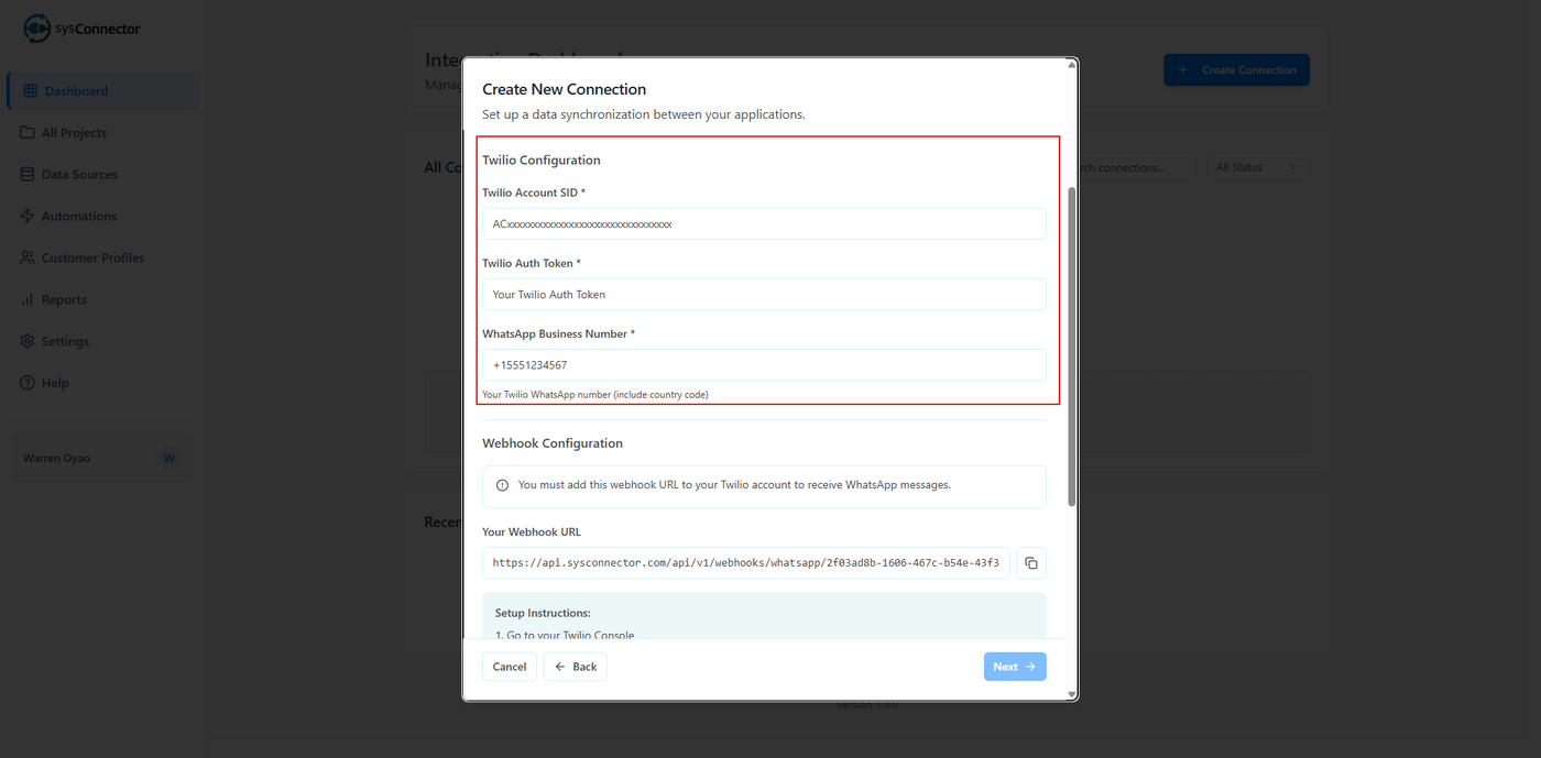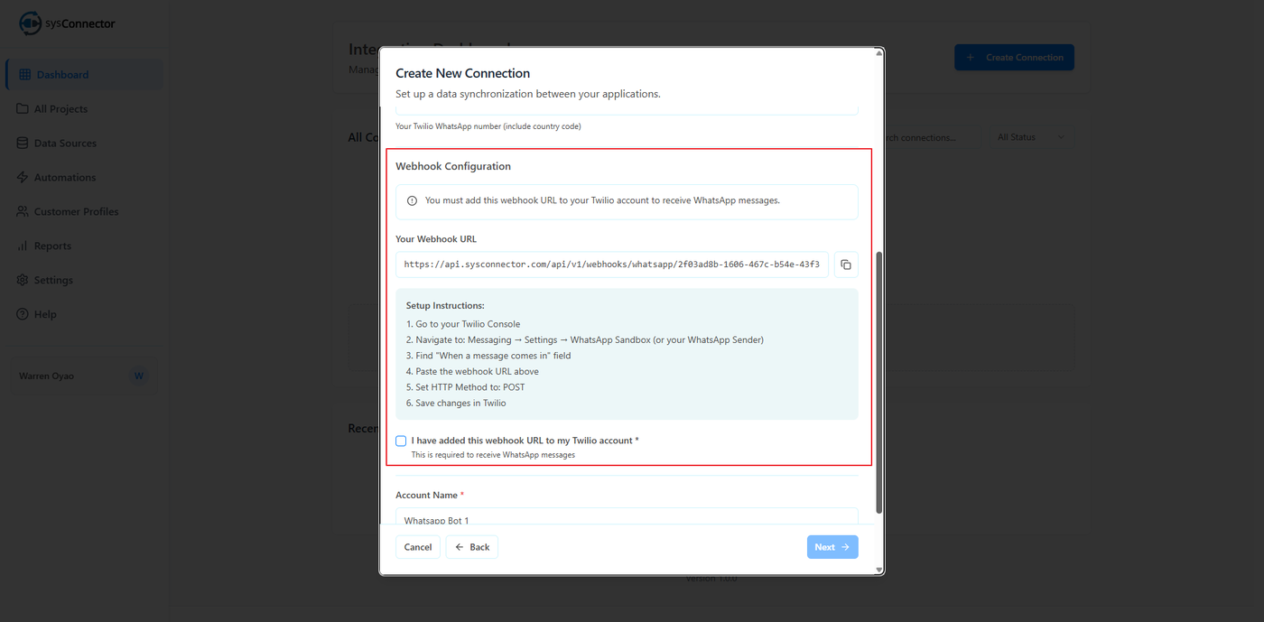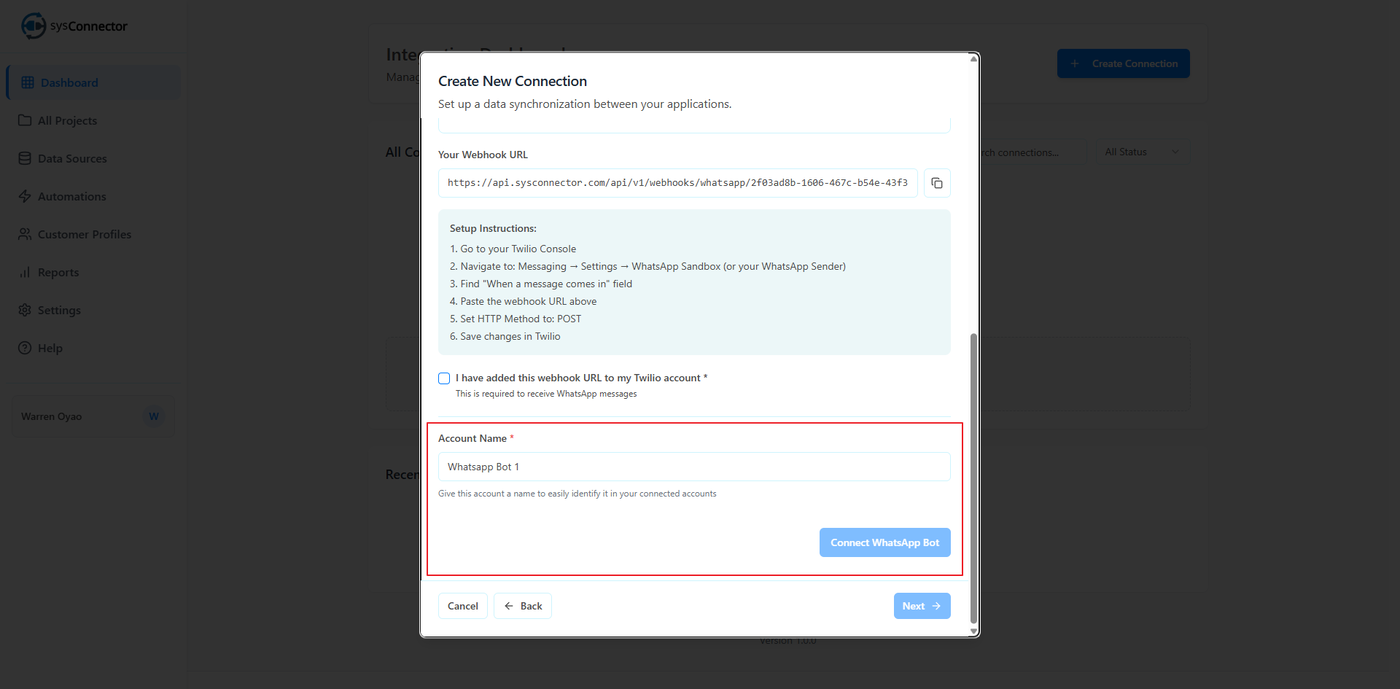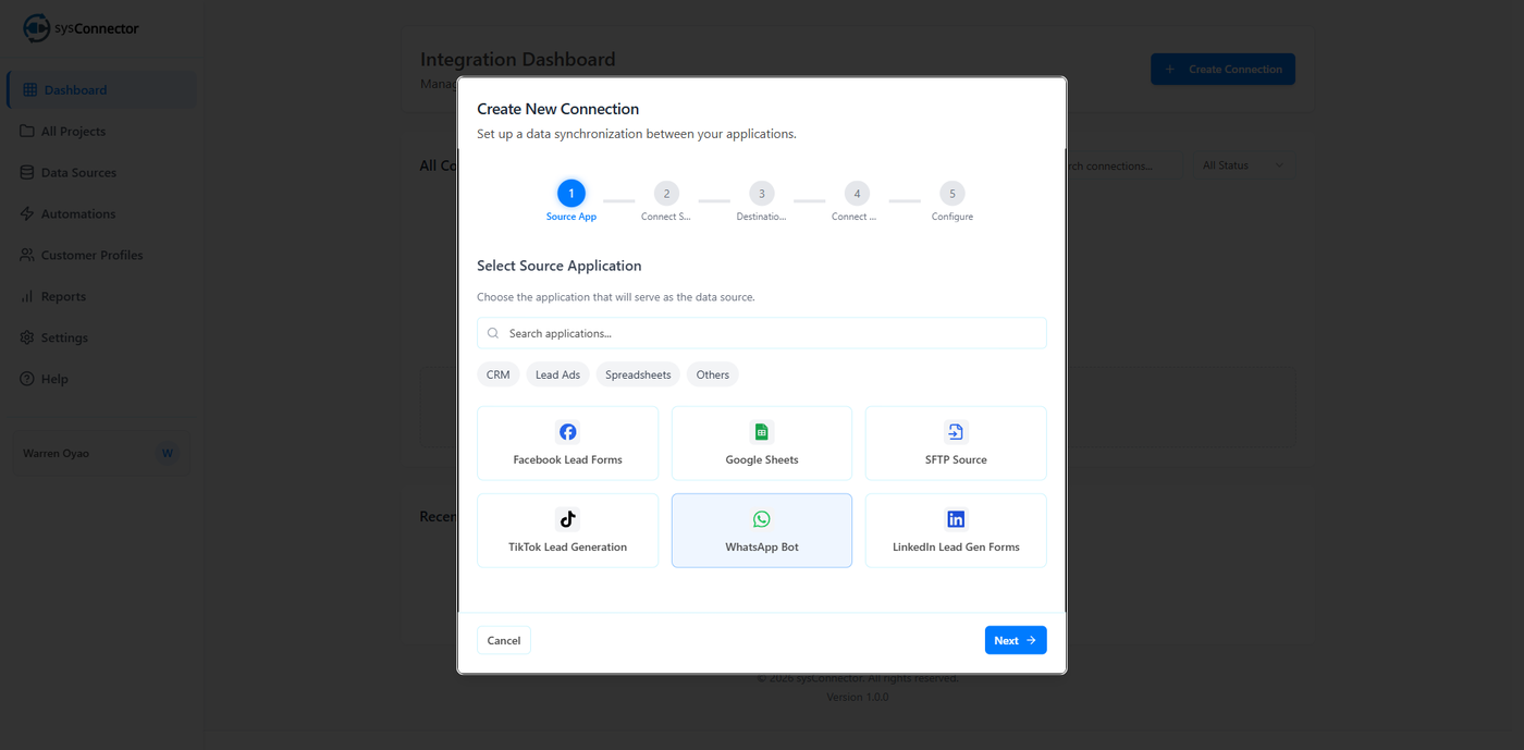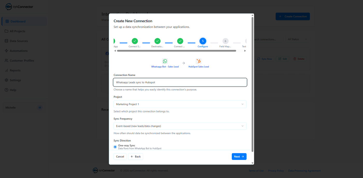 This guide walks you through the complete process of connecting a WhatsApp Bot (Source) to HubSpot (Destination) using the sysConnector platform. Once configured, user responses collected via WhatsApp will sync automatically into HubSpot.