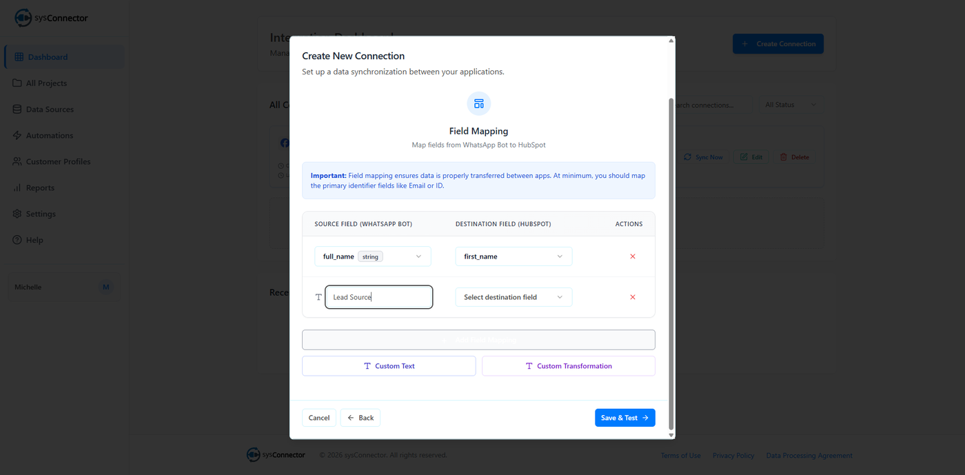 This step defines exactly how data collected in WhatsApp Bot is translated, formatted, and delivered into HubSpot. Proper configuration here ensures clean data, accurate reporting, and successful automation.