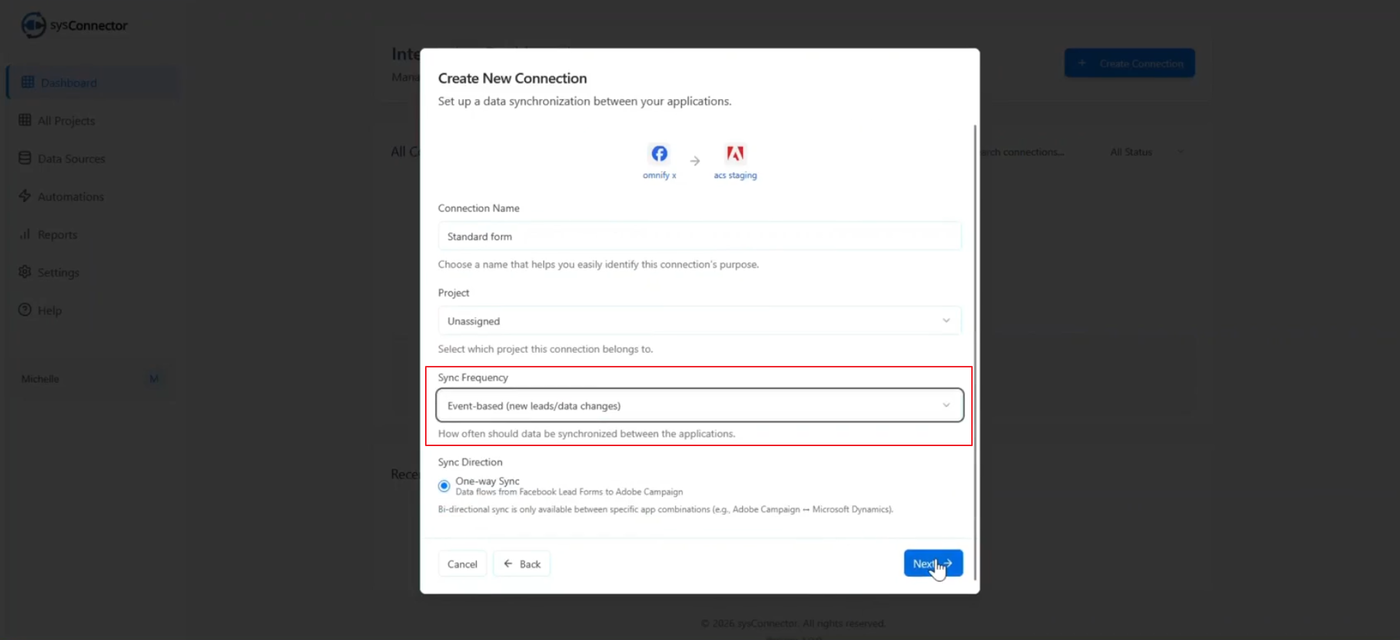 In sysConnector, ensure Sync Frequency is set to Event Based.