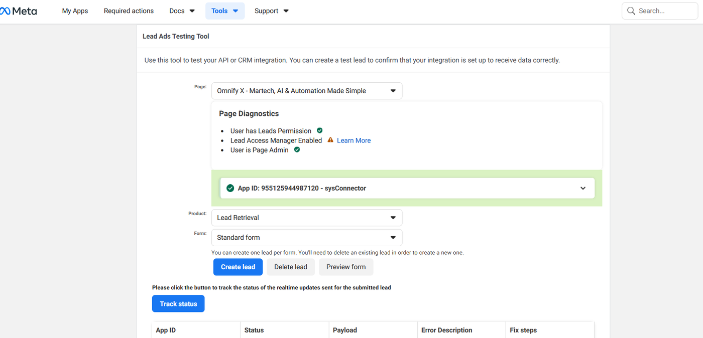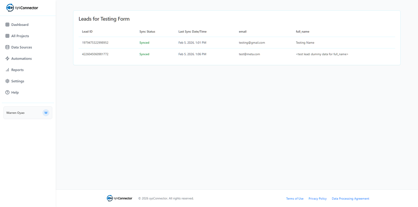 This guide walks you through testing whether leads from your Facebook Lead Forms are successfully syncing to your Destination Application using the sysConnector app — without running live ads.