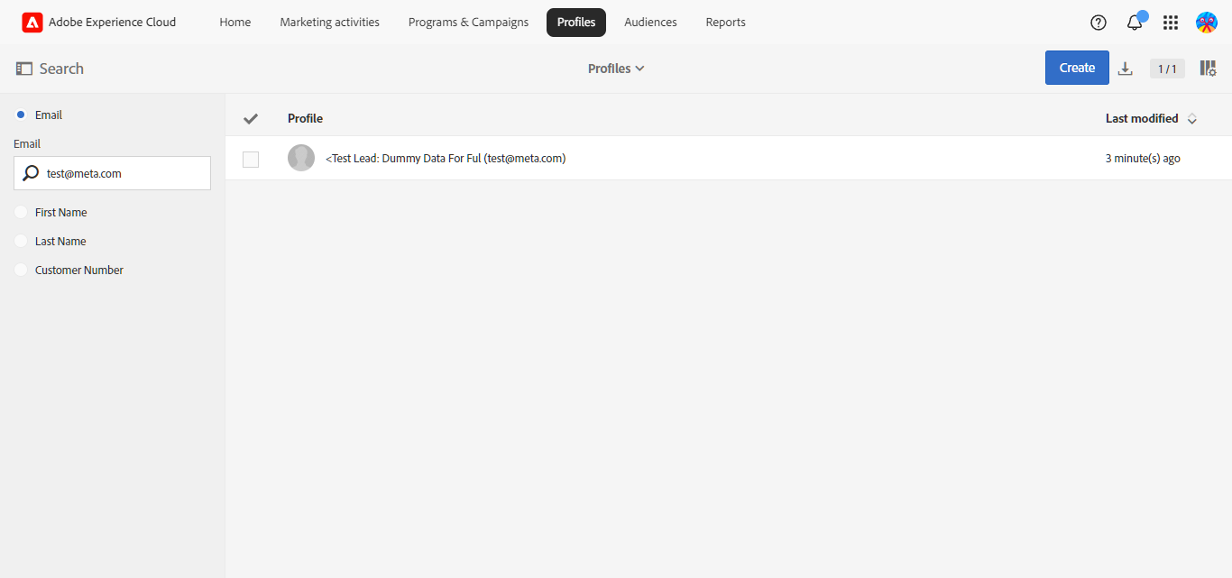 Confirm the test lead appears in the correct destination.